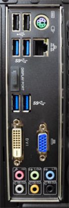 ▼USB3.0が4個、USB2.0が2個、PS2、LANポート、サウンド関連